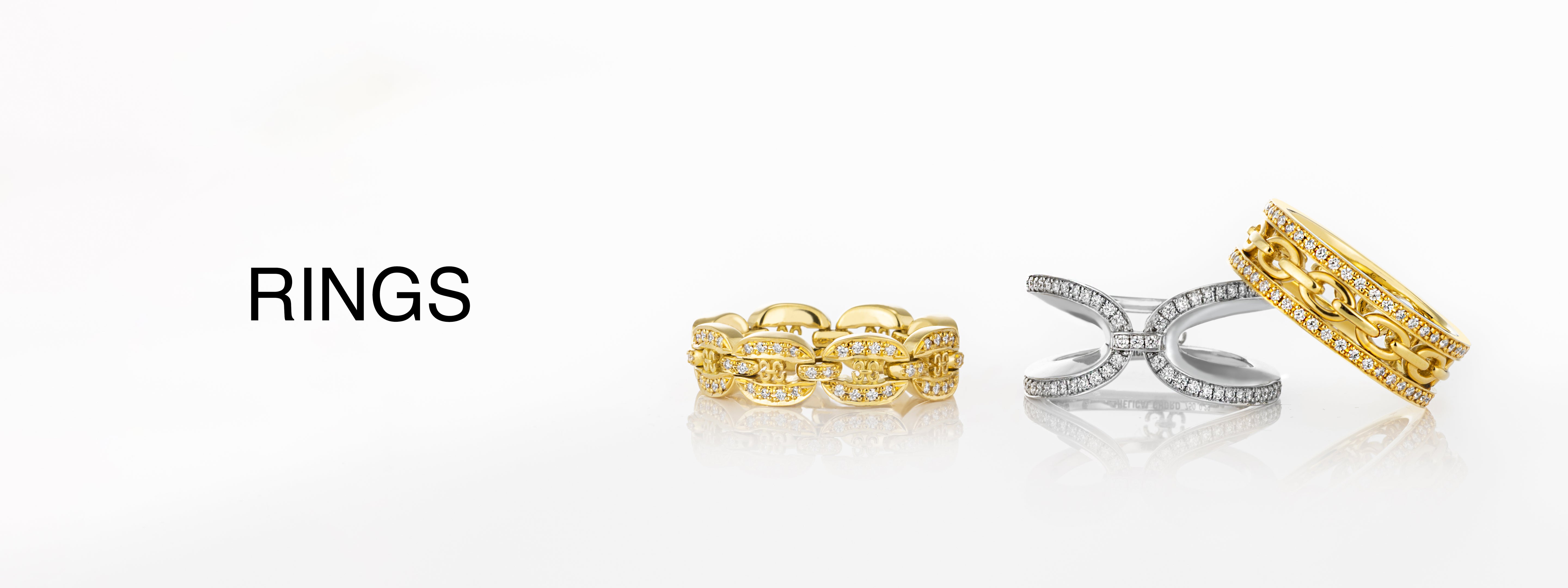 Links Three Side Chain Ring (yellow gold with diamonds)