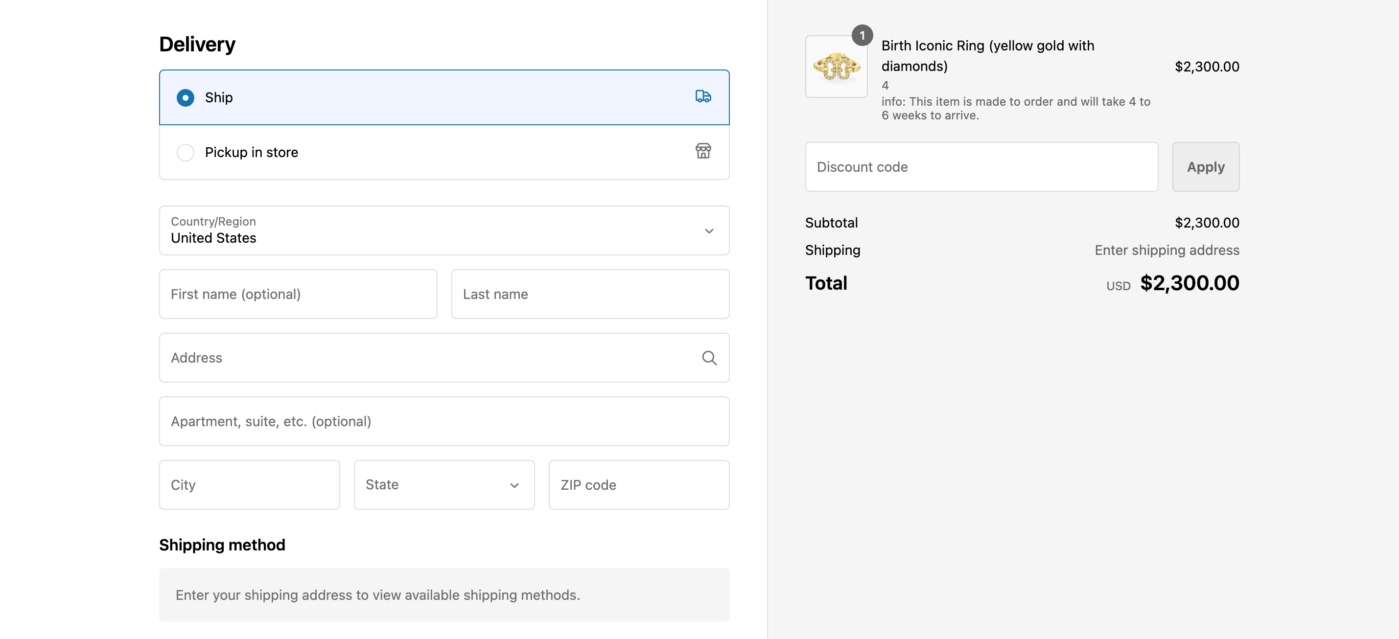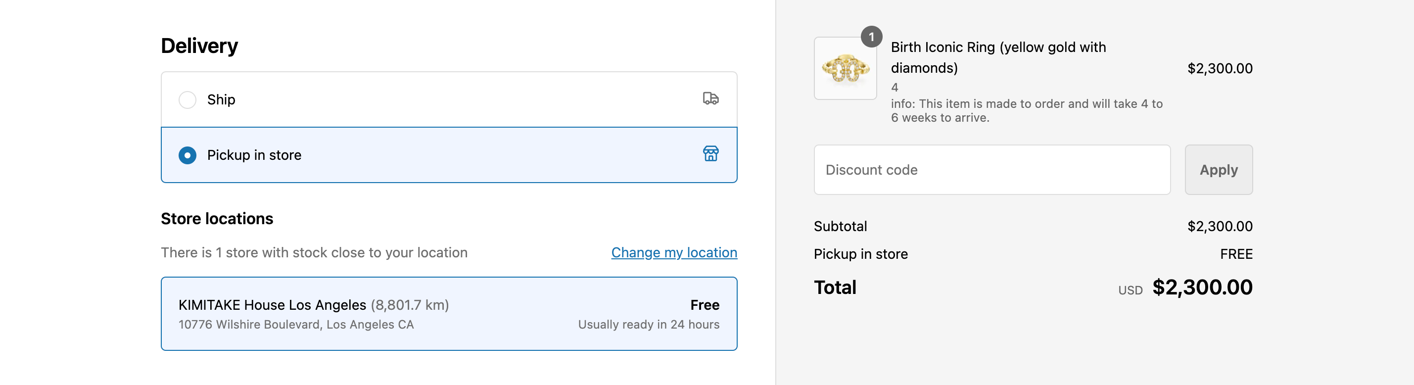 You can choose either “Ship” or “Pickup in store” as your delivery method.