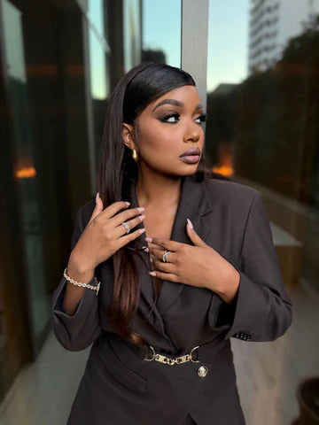 At the red carpet premiere of Netflix’s high-octane series FUBAR, iconic actress Carrie-Anne Moss stunned in a sleek black ensemble, elevated by KIMITAKE's Links Three-Sided Chain Earrings in Yellow Gold.