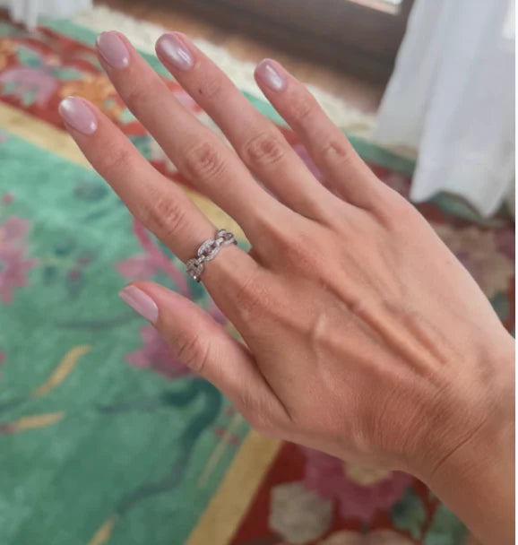 Taylor Swift has been frequently spotted in KIMITAKE's Links Iconic Chain Rings during personal outings, from Chiefs games to Super Bowl 2025 weekend with Travis Kelce.